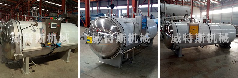 锅内压力由压力变送器随着锅内压力的升降,把信号输送到压力控制仪,进行锅内压力自动调整,使锅内压力始终处于在规定的范围内。如超出,可自动停止;如下降,可自动加压保护。使锅内产品处于同等压力下进行杀菌。在锅内达到工艺设定的冷却温度后,随即把锅内凉水排出,卸掉锅内压力,杀菌完毕,操作工人打开连锁装置,开启锅门取货
